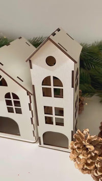 Ces magnifiques pièces sont conçues en interne par notre équipe et fabriquées de A à Z dans notre atelier en Ukraine occidentale. Avec ses différents modèles de maisons, elles créent un véritable petit village festif, avec en option une touche hygge supplémentaire grâce à la guirlande LED que nous proposons pour les maisons.